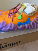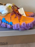 Brand new, in box.  The product is a pair of size 15 Crocs Pollex Juniper sneakers in an apricot color. Designed specifically for men, these athletic shoes feature a unique style inspired by the collaboration...