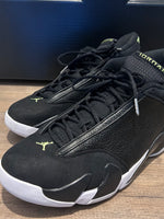 Get ready to elevate your sneaker game with the iconic Air Jordan 14 Retro "Indiglo". This legendary shoe features a sleek design and powerful cushioning for unparalleled comfort. The Indiglo colorway adds a bold pop to any outfit, making it a must-have for sneaker enthusiasts. Step up your style and performance with the Air Jordan 14 Retro "Indiglo"!