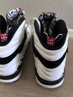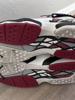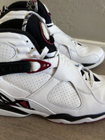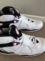 The Size 15 Air Jordan 8 Retro Alternate is a stylish and high-performance athletic shoe designed for men. Featuring a classic lace-up closure and a durable rubber outsole, these sneakers offer both comfort and functionality on the basketball court or as casual wear. The white colorway with leather upper and fabric lining gives a sleek and modern look, while the retro theme adds a touch of nostalgia to the design. Perfect for the spring season, these Air Jordan 8's are a must-have for any sneaker enthusiast.