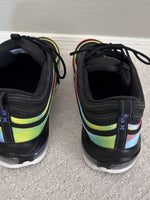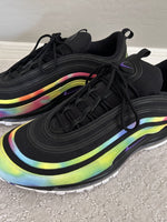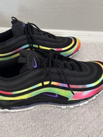 The product is a pair of Nike Air Max 97 sneakers in a size 15, featuring a tie-dye pattern in multicolor. These athletic shoes have a low top shaft style with a lace-up closure, designed...